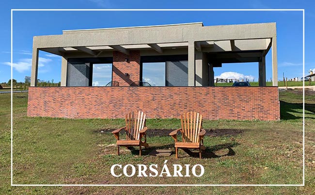 40m² de área, com amplo deck. Sala integrada e cozinha completa.